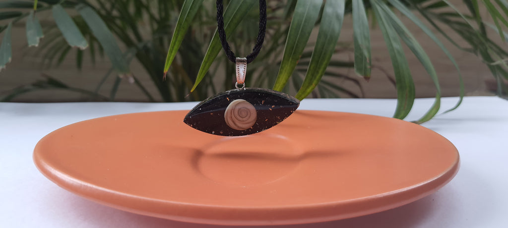 Evil Eye Orgonite pendant with Black tourmaline and Gomti chakra